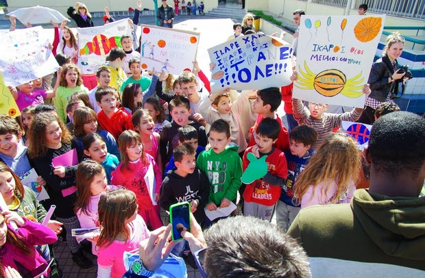 Τα παιδιά του 12ου δημοτικού είχαν ετοιμάσει πολλές ζωγραφιές για τους παίκτες του Ικάρου και είχαν συγκεκριμένες “απαιτήσεις”. Από τον Γιάννη Γκαγκαλούδη και τον Άντονι Ρόμπερτσον ζήτησαν τρίποντα και από τον Ιβάν Άσκα καρφώματα. Φυσικά κανείς εκ των τριών δεν τους χάλασε το χατίρι.