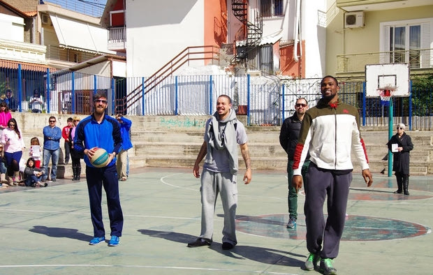 Ο Γιάννης Γκαγκαλούδης, ο Ιβάν Άσκα και ο Άντονι Ρόμπερτσον, μίλησαν στους μαθητές, έπαιξαν μαζί τους μπάσκετ και δεν σταμάτησαν να υπογράφουν αυτόγραφα, στα παιδιά που τους υποδέχθηκαν με μεγάλη αγάπη.
