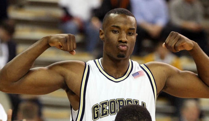 100119 Atlanta, Ga. -- Georgia Tech's Gani Lawal (31) shows off his muscles as he is introduced before their 66-64 win over Clemson in their ACC game at Alexander Memorial Coliseum Tuesday night in Atlanta, Ga., January 19, 2010. Lawal had 16 points, 10 rebounds, 2 blocks, and 1 steal. Georgia Tech's Gani Lawal came back for his junior year forgoing an early exit to go to the NBA to lead Georgia Tech and a group of young players this season. Jason Getz, [email protected]
