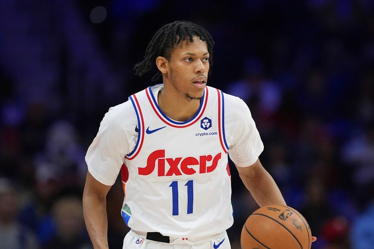 Philadelphia 76ers' Jeff Dowtin Jr. plays during an NBA basketball game between the Philadelphia 76ers and the Washington Wizards Wednesday, March 26, 2025, in Philadelphia. (AP Photo/Matt Slocum)