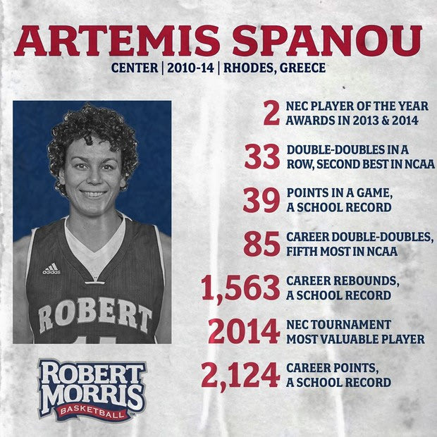 Σημαντική διάκριση για την Άρτεμις Σπανού, που μπήκε στο Hall of Fame του Πανεπιστημίου Ρόμπερτ Μόρις πέντε χρόνια μετά από την αποχώρησή της από το NCAA.