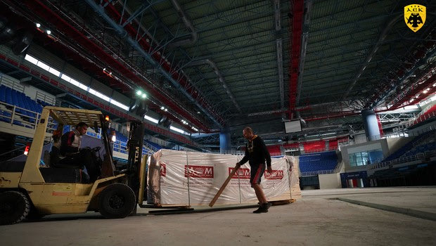 Ακόμη δεν έχει μπει στο νέο γήπεδό της, στο ολυμπιακό κλειστό των Άνω Λιοσίων, η ΑΕΚ όμως συνεχίζει να δουλεύει σε καθημερινή βάση για να μετακομίσει το συντομότερο δυνατό στο νέο της σπίτι.