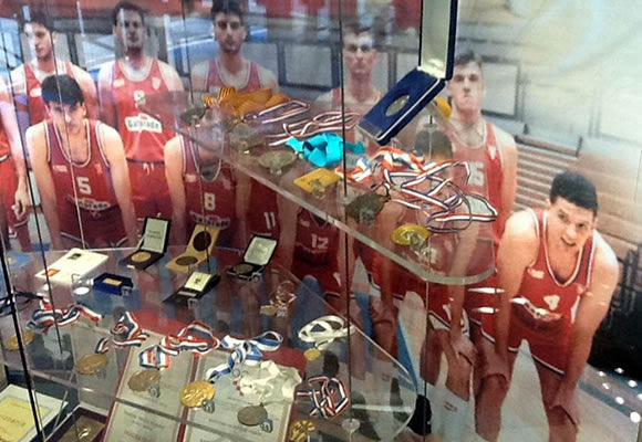 - Η ρομαντική περίοδος της Σιμπένκα. Το μπρούτζινο αγαλματίδιο στη μέση αναπαριστά τον “Ζούτκα”, την μασκότ της Γιουγκοπλάστικα, αλλά με το φουντωτό μαλλί του Ντραζεν. Ένα αγαπημένο δώρο από την ομάδα του Σπλιτ. Πάνω δεξιά, το μετάλλιο του πρωταθλητή των 16 ωρών. Δεν το επέστρεψε κανείς και η Ομοσπονδία έβγαλε άλλα να δώσει στην Μπόσνα.