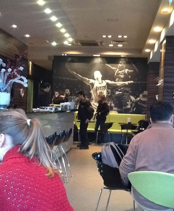 - Ένα πόστερ του, από εντυπωσιακή φάση ενός αγώνα του, με την φανέλα των Νετς, στολίζει τον τοίχο του “Amadeus”