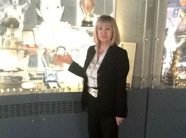 Περίμενα να πάει η ώρα 11, για να παρακολουθήσω την πρωινή προπόνηση του Ολυμπιακού, για τον αγώνα της Ευρωλίγκας με την Τσεντεβίτα. Ξαφνικά βλέπω την Μπιζέρκα να μπαίνει μέσα , περιποιημένη στην τρίχα όπως πάντα, και να χαιρετάει και να την χαιρετάνε όλοι. Τα βλέμματά μας συναντήθηκαν και η εξέλιξη ήταν εντελώς αυθόρμητη. Μια ζεστή αγκαλιά και ένα σταυρωτό φιλί. “Τι κάνεις, πώς απ’ εδώ;” με ρωτάει, με την βοήθεια της Αλεξάντρας, που είναι το δεξί της χέρι στο Μουσείο και ξέρει καλά Αγγλικά.