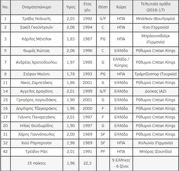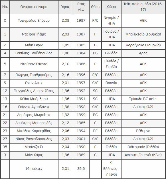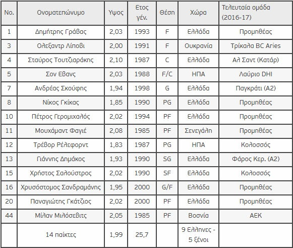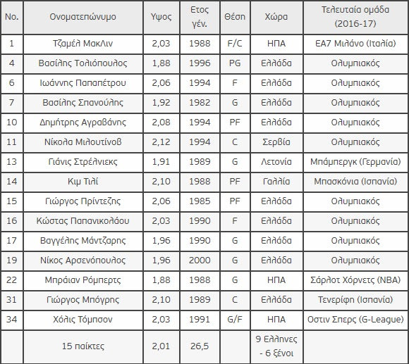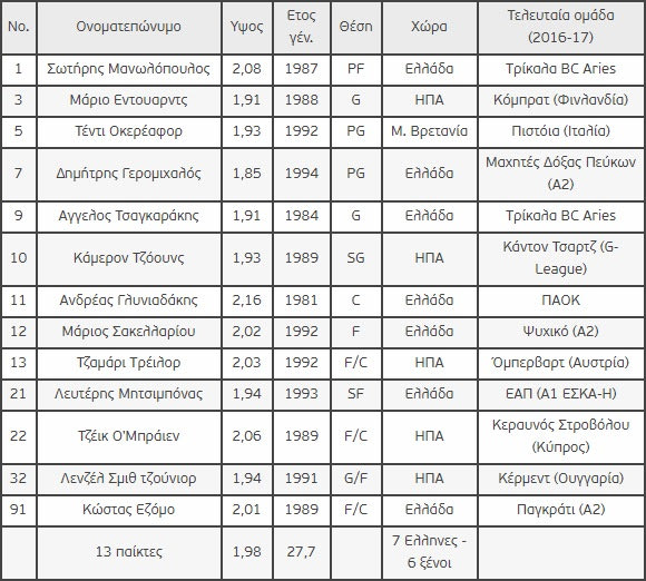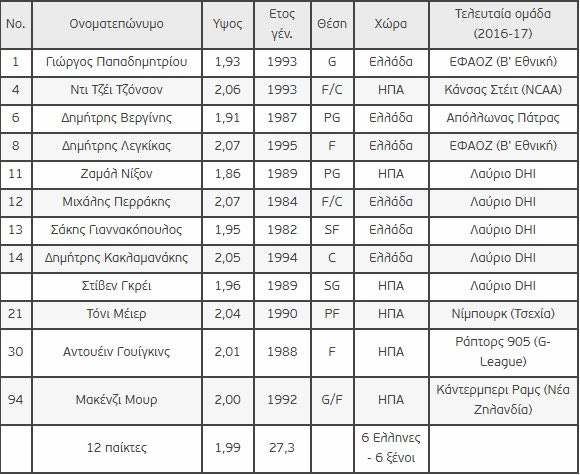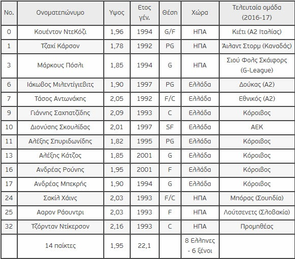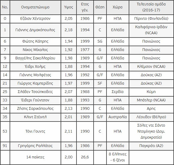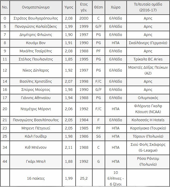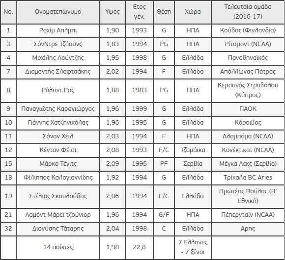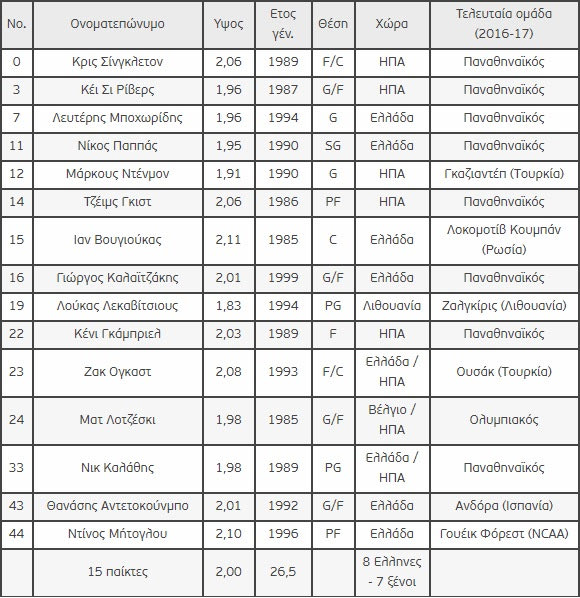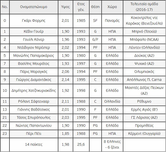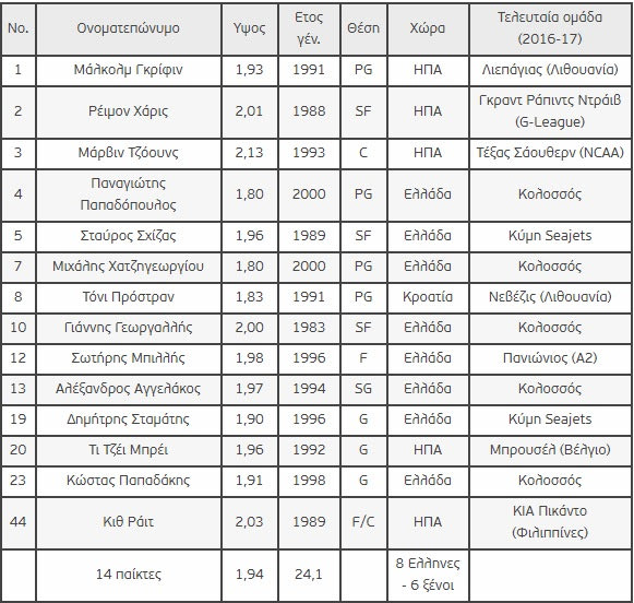 Διαβάστε αναλυτικά τα 14 ρόστερ της σεζόν 2017-18, από αυτά του πρωταθλητή Παναθηναϊκού Superfoods και του περσινού φιναλίστ Ολυμπιακού, μέχρι αυτά του νεοφώτιστου (και νεοσύστατου) Γυμναστικού Λάρισας – Φάρου και του Πανιωνίου, που επιστρέφει στο κορυφαίο επίπεδο του ελληνικού μπάσκετ δύο χρόνια μετά τον υποβιβασμό του.