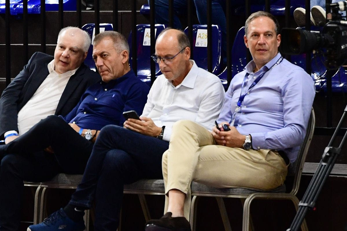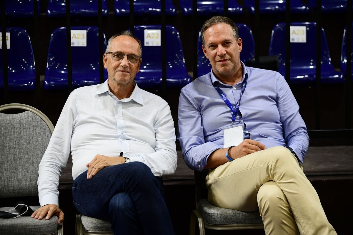 Ο πρόεδρος του ΕΣΑΚΕ, Μιχάλης Μελής και ο πρόεδρος της ΕΟΚ, Βαγγέλης Λιόλιος βρέθηκαν μαζί στο κλειστό της Καλλιθέας στη Ρόδο την Παρασκευή (26/9) για να παρακολουθήσουν τους ημιτελικούς του Stoiximan Super Cup 2025.
