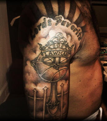 24) Έχει δύο μεγάλα τατουάζ στα χέρια: το ένα γράφει “Lord’s Favorite Lawman” και στο άλλο έχει γραμμένος -σαν σε πάπυρο- κομμάτια από τους ψαλμούς 91 και 93, θέλοντας να υπογραμμίσει τη φράση “that God is my fortress, in him I trust, and that I shall fear no one. That’s how I feel” (“ο Θεός είναι το φρούριο μου. Αυτόνς εμπιστεύομαι και για αυτό δεν φοβάμαι κανέναν. Έτσι νιώθω”). Γενικά έχει “χτυπήσει” πολλές φορές το κορμί του, γράφοντας λέξεις όπως “ευλογημένος” (με δύο χέρια με φτερά να προσεύχονται) στην πλάτη ή το “without love there is no faith” στο εσωτερικό του μπράτσου (“χωρίς αγάπη, δεν υπάρχει πίστη”).