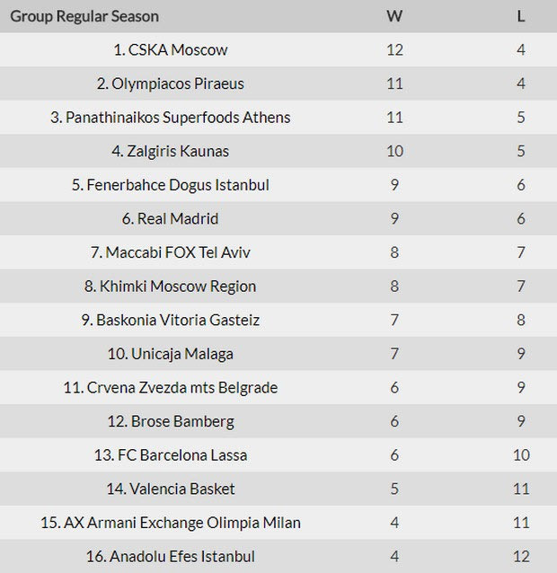 Τα αποτελέσματα, η κατάταξη και το πρόγραμμα της EuroLeague (16αγ.)