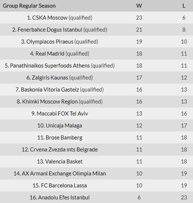 Η δεύτερη θέση της κανονικής περιόδου της EuroLeague 2017/18 κατακτήθηκε από την Φενέρμπαχτσε, μετά την εκτός έδρας ήττα του Ολυμπιακού από την Ουνικάχα Μάλαγα ( 87-85 στην παράταση ). Οι Πειραιώτες συνεχίζουν να είναι το φαβορί για την τρίτη θέση, δεν αποκλείεται όμως να πέσουν και στην τέταρτη, αν προκύψει ένας κάπως ακραίος συνδυασμός αποτελεσμάτων που μπορείτε να διαβάσετε εδώ .