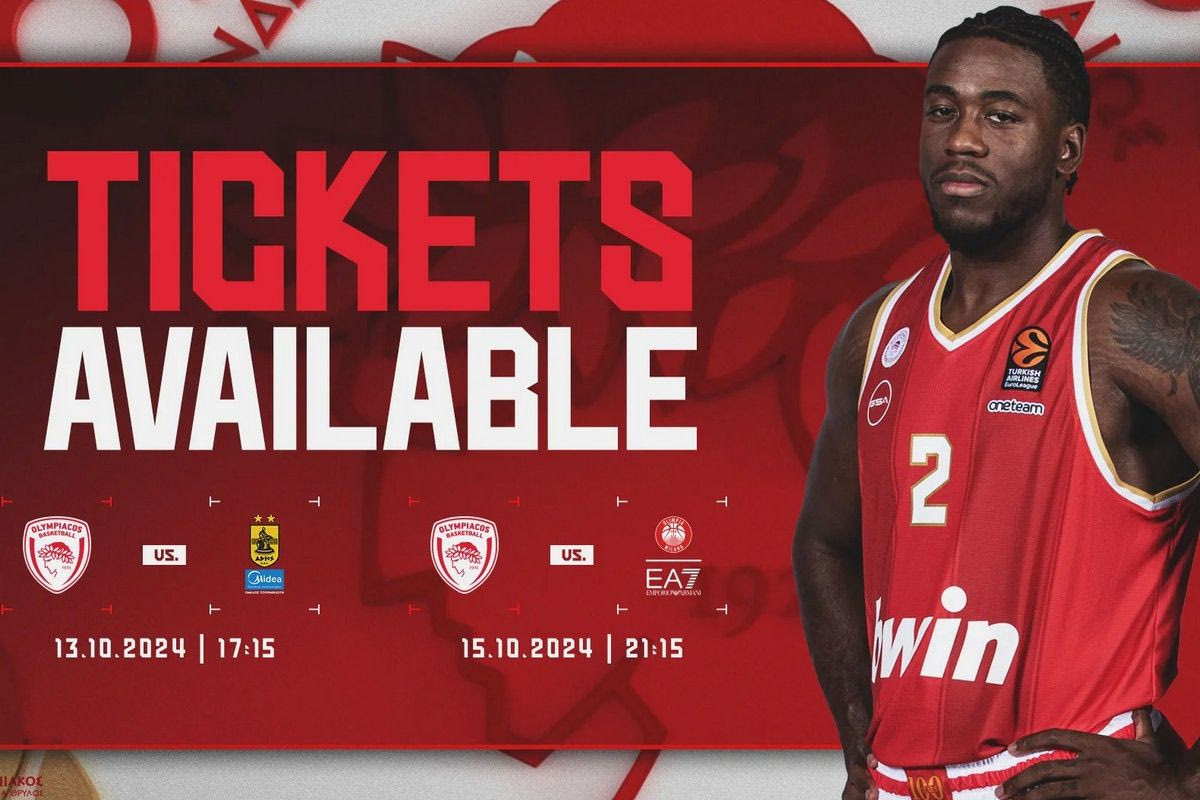 “Η Κ.Α.Ε. ΟΛΥΜΠΙΑΚΟΣ ανακοινώνει ότι για τον αγώνα Ελληνικού Πρωταθλήματος Stoiximan Basket League 2024 – 2025 με τον ΑΡΗ MIDEA 13/10/2024, με ώρα έναρξης 17:15 και για τον αγώνα Euroleague με την EA7 EMPORIO ARMANI MILAN 15/10/2024, με ώρα έναρξης 21:15 η διάθεση των εισιτηρίων πραγματοποιείται ως εξής: