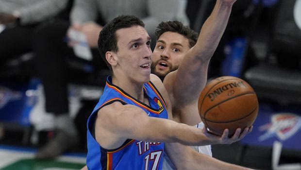Ο Αλεξέι Ποκουσέβσκι σε προσπάθειά του σε αγώνα των Θάντερ με τους Μάβερικς ⓒ 2021 Sue Ogrocki / Associated Press
