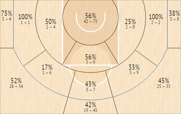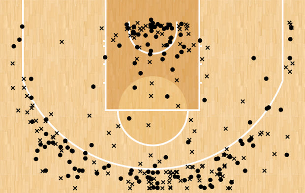 Τα shot charts του Στεφ Κάρι στα τελευταία 11 ματς, από το InStat Scout: