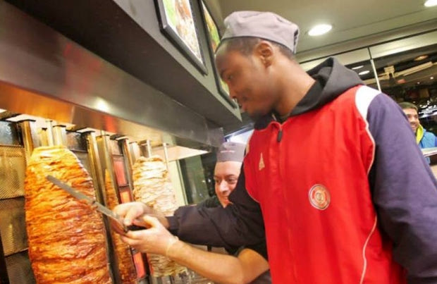 Τέλος, οι Chris Evans, Jessie Sapp και Mike Porrini δοκίμασαν τις δυνάμεις τους και πίσω από τον πάγκο του καταστήματος κόβοντας μάλιστα γύρο αριστοτεχνικά!