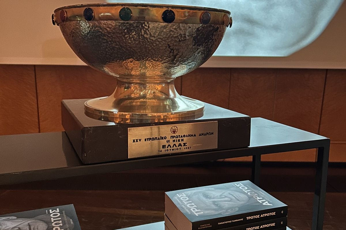 Το τρόπαιο του EuroBasket 1987, αλλά και εκείνο του EuroBasket 2005 πήραν τις θέσεις τους στο Μέγαρο Μουσικής, στο πλαίσιο της παρουσίασης της αυτοβιογραφίας του Παναγιώτη Γιαννάκη από τον διευθυντή του SPORT24, Παντελή Βλαχόπουλο.