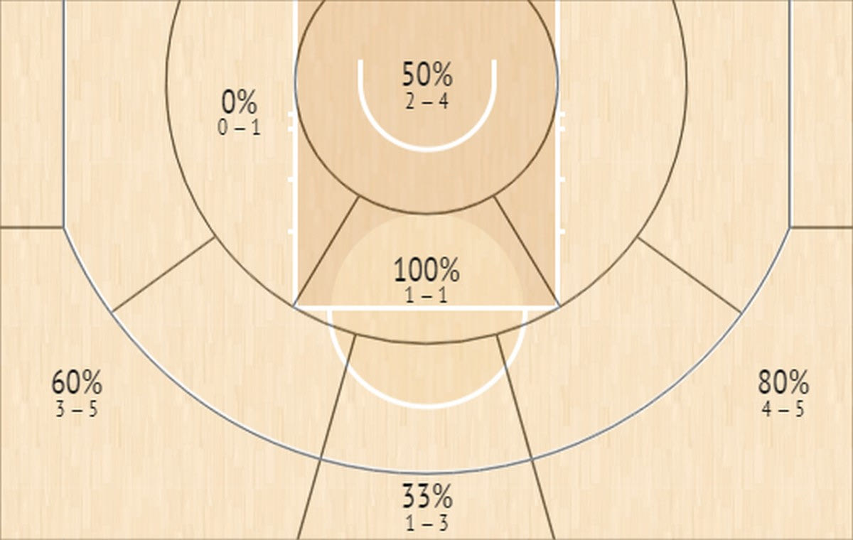 Ο ομογενής γκαρντ βρέθηκε σε σπουδαία μέρα, τελειώνοντας τον αγώνα με 3/6 δίποντα, 8/13 τρίποντα, 7/8 βολές (κάποιες βολές έδιναν διπλούς πόντους όπως έχει ήδη εξηγηθεί), 3 ριμπάουντ, 3 ασίστ, 1 κλέψιμο και 4 λάθη σε 35 λεπτά συμμετοχής, σε μία απίθανη εμφάνιση.