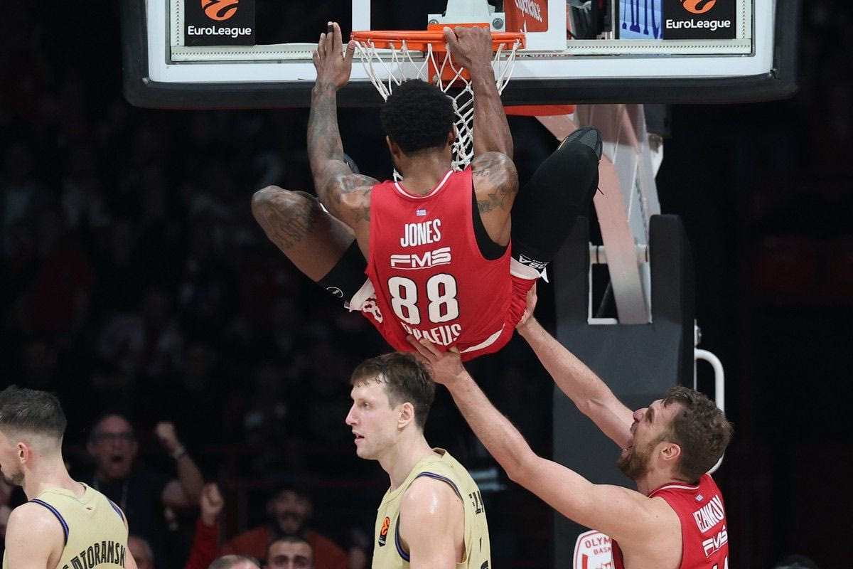 Ο Ταϊρίκ Τζόουνς πρόσφερε απλόχερα θέαμα στη νίκη του Ολυμπιακού επί της Μπαρτσελόνα, κάνοντας ορισμένα εντυπωσιακά καρφώματα στο καλάθι των Καταλανών.