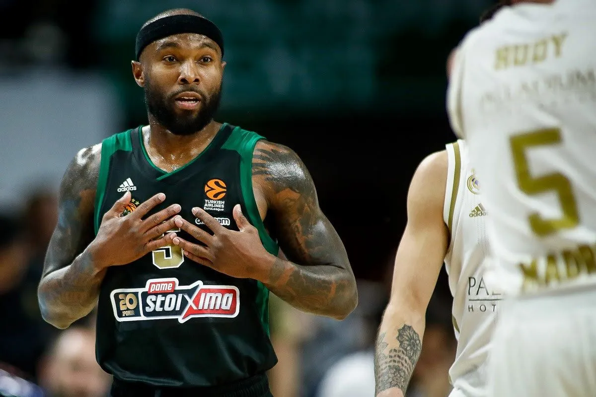 Ο Ταϊρίς Ράις σε φάση από αγώνα του Παναθηναϊκού με τη Ρεάλ Μαδρίτης στο ΟΑΚΑ