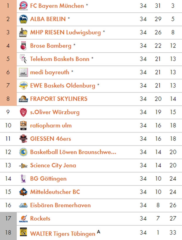 Με εκτός έδρας νίκη επί της Μίτελντοϊτσερ (76-74) ολοκλήρωσε η Μπάμπεργκ τη regular season της Bundesliga. Η ομάδα του Λούκα Μπάνκι έκλεισε με εντυπωσιακό τρόπο τη regular season, αφού τον τελευταίο μήνα σημείωσε οκτώ νίκες σε εννέα αγώνες με αποτέλεσμα να “σκαρφαλώσει” στην κατάταξη του γερμανικού πρωταθλήματος.