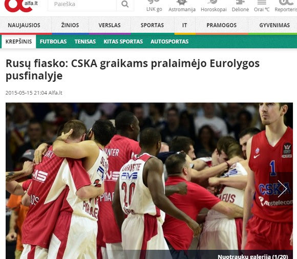 Δίπλα στη Ρωσία, στη Λιθουανία, η “Alfa” κάνει λόγο για “ρωσικό φιάσκο: Η ΤΣΣΚΑ έχασε τον ημιτελικό από τους Έλληνες”.