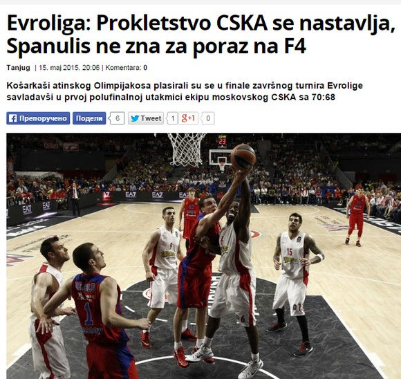 Στη γειτονική Σερβία, η “Novosti” ξεκαθαρίζει ότι η “κατάρα της ΤΣΣΚΑ συνεχίζει, ο Σπανούλης δεν χάνει στη Final 4”