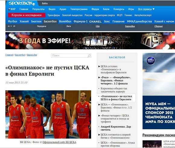 ‘Ιδιο το κλίμα και στην άλλη μεγάλη ιστοσελίδα της χώρας “Sportbox.ru“, χωρίς πολλά πολλά με τίτλο λιτό, πλην σαφή και την απογοήτευση προφανή στην εικόνα που συνοδεύει την είδηση. “Ο Ολυμπιακός δεν επιτρέπει στην ΤΣΣΚΑ να βρεθεί στον τελικό”