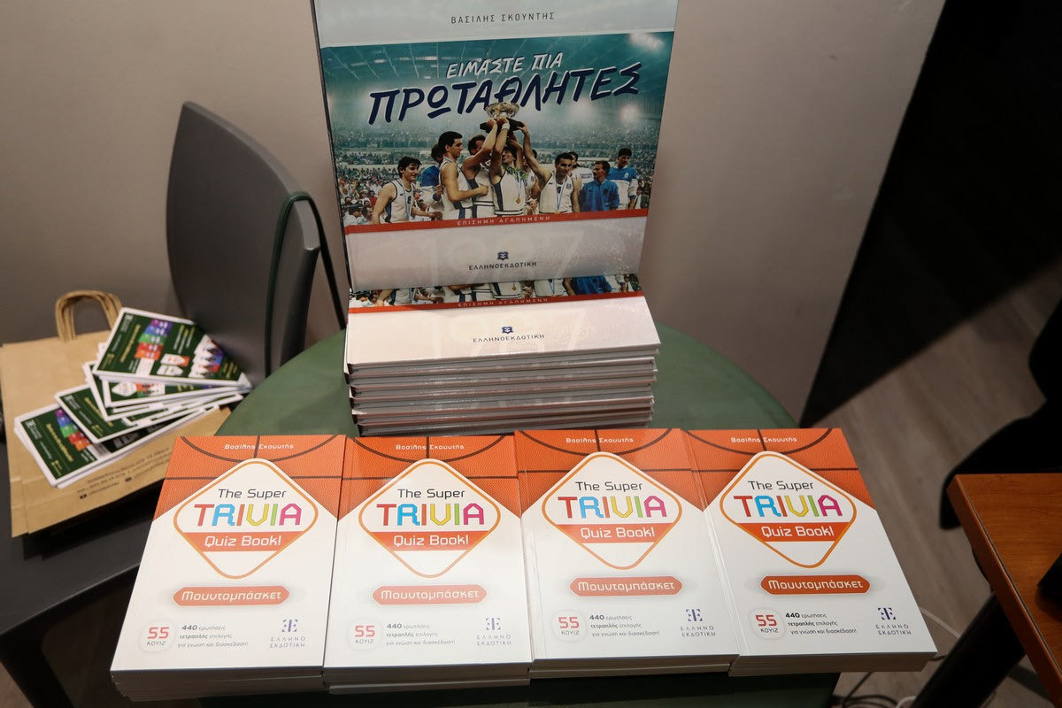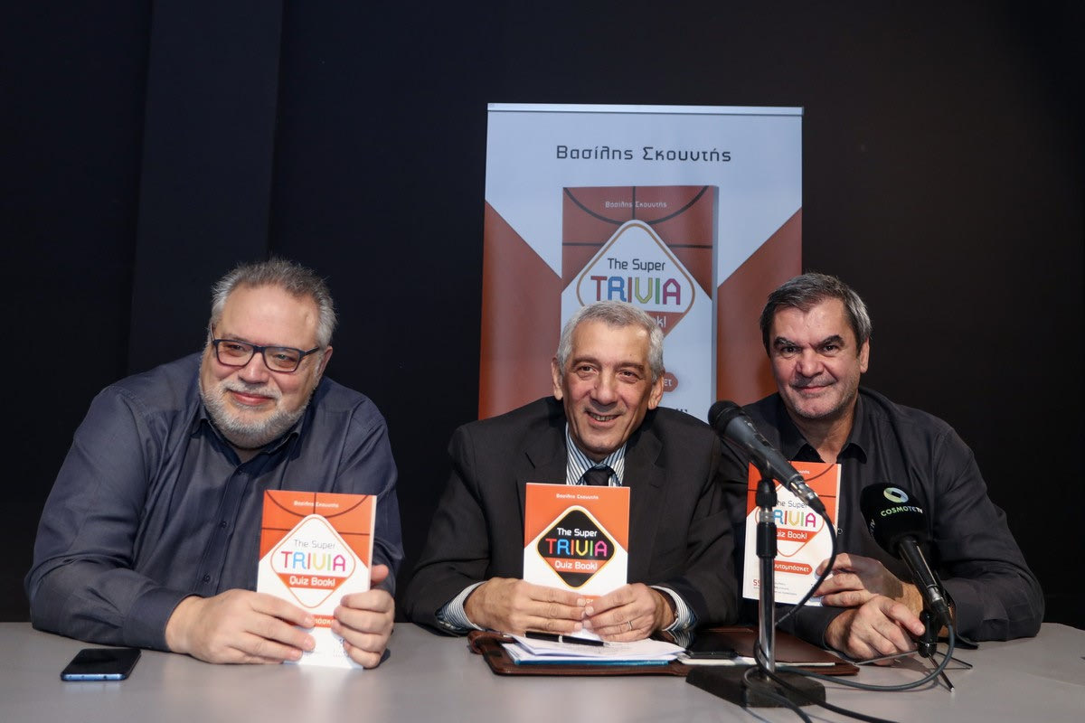 Παρουσία πλήθους μπασκετικού κόσμου, ο Βασίλης Σκουντής παρουσίασε χθες (18/12) το νέο του βιβλίο "The Super TRIVIA Quiz Book!", το οποίο περιέχει 440 ερωτήσεις και αποτελεί μία ωδή στην ιστορία του Παγκοσμίου Κυπέλλου Μπάσκετ.