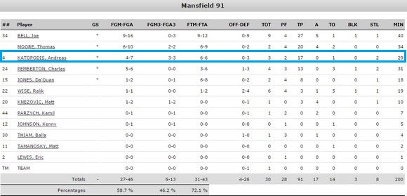 Το έτερο ελληνικό δίδυμο του κολεγιακού πρωταθλήματος είχε μόλις έναν αγώνα την περασμένη εβδομάδα, μετ ον Ανδρέα Κατωπόδη να σκοράρει 17 πόντους σε 29 λεπτά συμμετοχής, την ώρα που ο Γεράσιμος Κουτούφας έμεινε στον πάγκο καθ όλη τη διάρκεια της αναμέτρησης.