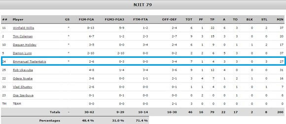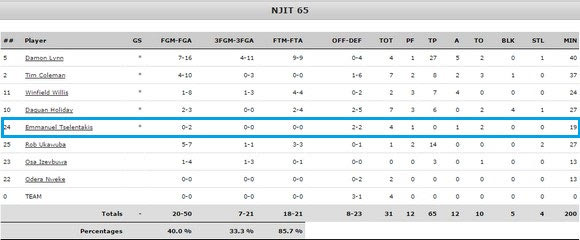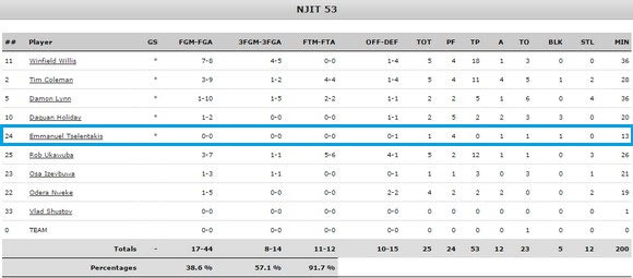 Μεγάλο χρόνο συμμετοχής είχε ο Μανώλης Τσελεντάκης στα τρία παιχνίδια αυτής της εβδομάδας. Ο τριτοετής γκαρντ του NJIT απολαμβάνει της εμπιστοσύνης του προπονητή του, έχοντας σημαντική συμβολή στις νίκες επί του St. Joseph’s College (με 79-60) και του Maine (με 65-55). Ενδιάμεσα, γνώρισε την ήττα από το Dartmouth με 62-53.