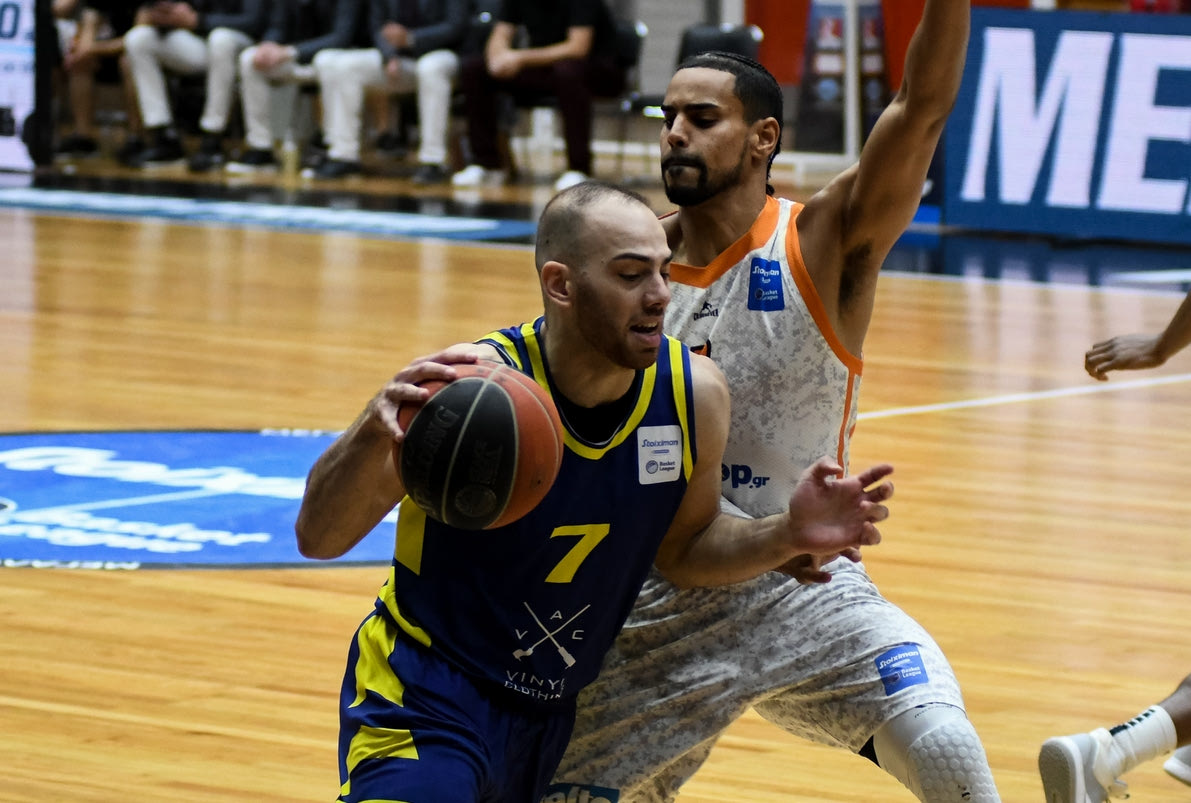 Ο Βασίλης Μουράτος σε στιγμιότυπο από το ματς Προμηθέας - Λαύριο
