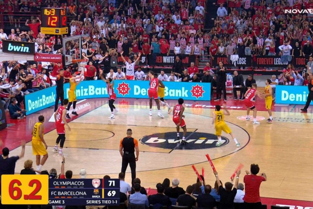 Το χρονόμετρο της NOVA δείχνει παράβαση της Μπαρτσελόνα πριν από το καλάθι που έστειλε το ματς στην παράταση