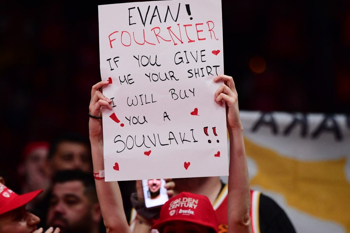 “Εβάν Φουρνιέ αν μου δώσεις τη φανέλα σου, θα σου αγοράσω ένα σουβλάκι”, ήταν το μήνυμα που αποτύπωσε ο φωτογραφικός φακός στις εξέδρες του Σταδίου Ειρήνης και Φιλίας.