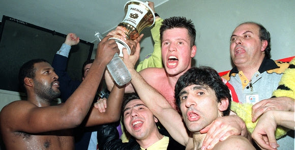 Σε εκείνο το σημείο ο άλλοτε διεθνής γκαρντ του Άρη και μετέπειτα τεχνικός του θυμήθηκε την ατμόσφαιρα που είχανε δημιουργήσει οι 5.000 φίλαθλοι του Άρη αλλά και την άμυνά του πάνω στον Πέταρ Ναουμόσκι. “Στο Τορίνο είχαν ταξιδέψει κάτι παραπάνω από 5.000 φίλαθλοι του Άρη, υπήρχε πίστη στην ομάδα, είχαμε αυτοπεποίθηση, αλλά και ένα άγχος από την πίεση, γιατί αν δεν κατακτούσαμε εκείνο το τρόπαιο θα ήταν κάτι σαν καταστροφή για εμάς. Ο τρόπος που εξελίχθηκε το ματς ήταν ψυχοφθόρος και ουσιαστικά κρίθηκε στο τελευταίο άστοχο σουτ των Τούρκων. Είχα μελετήσει τον Ναουμόσκι, ήξερα το παιχνίδι του και σε όλο το ματς τον κυνηγούσα όπου και αν πήγαινε. Στο τέλος προσπάθησα να τον δυσκολέψω και στο σουτ που δοκίμασε δεν βρήκε στόχο. Από εμάς θυμάμαι είχε κάνει αρκετά καλό παιχνίδι ο Τάρλπεϊ”.