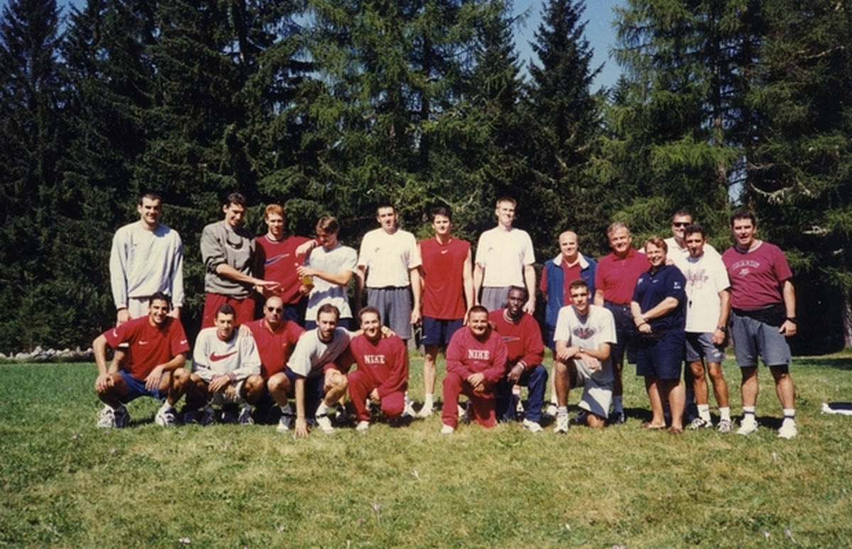 Ιστορική φωτό από την προετοιμασία του Ολυμπιακού, το καλοκαίρι του 1997: Από αριστερά, πάνω: Τάρλατς, Φασούλας, Ρότζερς, Νάκιτς, Ζουρπένκο, Καρνισόβας, Ζεβροσένκο, Νάκιτς, Ίβκοβιτς, Λιβιεράτος, Παραμανίδης (παρακολουθούσε τις προπονήσεις) Μεριχωβίτης (γυμναστής), Μπογατσιώτης. Κάτω: Βούκτσεβιτς, Μίχαλος, Δημητρακόπουλος (γιατρός), Τόμιτς, Λυκουρέσης (φυσιοθεραπευτής), Βουρλιώτης (φροντιστής), Μπένετ και Καραπλής Αρχείο Κώστα Μπογατσιώη