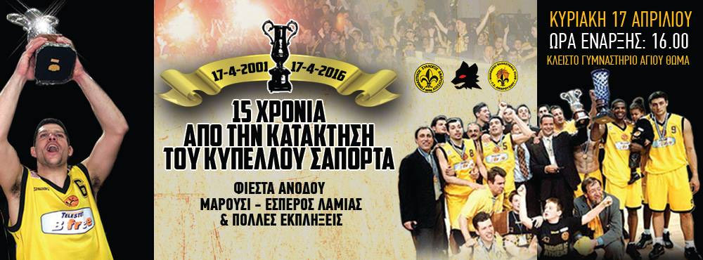 Στις 17/4 συμπληρώνονται 15 χρόνια από την κατάκτηση του Κυπέλλου Σαπόρτα από το Μαρούσι και η ομάδα των βορείων προαστίων θα γιορτάσει την επέτειο μαζί με τον κόσμο της στο παιχνίδι με τον Έσπερο Λαμίας (PHOTO).