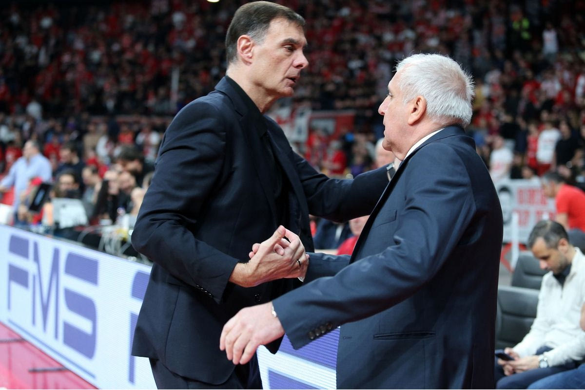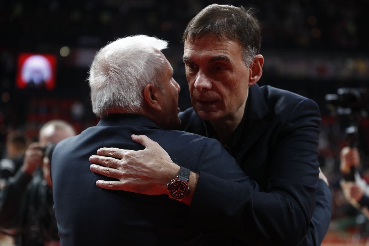 Γιώργος Μπαρτζώκας και Ζέλιμιρ Ομπράντοβιτς τα είπαν σε όμορφο κλίμα πριν από το Ολυμπιακός – Παρτίζαν.