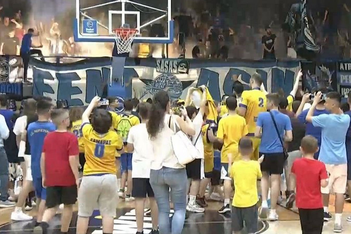 Η σεζόν 2022/23 έχει θετικό πρόσημο για το Περιστέρι bwin, καθώς το 3-0 στη σειρά των μικρών τελικών της Basket League με τον ΠΑΟΚ έδωσε την τρίτη θέση στην ομάδα του Βασίλη Σπανούλη. Στο φινάλε της αναμέτρησης οι παίκτες της ομάδας των δυτικών προαστίων της Αθήνας πήραν τα μετάλλιά τους και στη συνέχεια γιόρτασαν με τον κόσμο, που άναψε καπνογόνα για να αποχαιρετήσει με φαντασμαγορικό τρόπο την φετινή περίοδο.