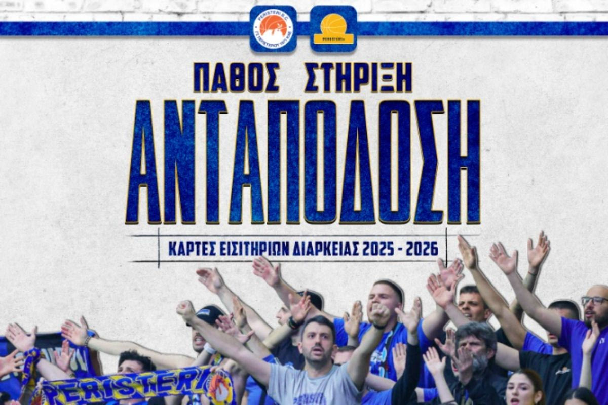 Τα εισιτήρια θα διατίθενται online μέσω της επίσημης ιστοσελίδας μας με κλικ εδώ, του δικτύου πωλήσεων της www.ticketmaster.gr, καθώς και από τα γραφεία της ΚΑΕ Περιστερίου (Κλειστό Γυμναστήριο «Ανδρέας Παπανδρέου», Τζων Κέννεντυ & Γιαννιτσών 81Α, Περιστέρι, 12131), καθημερινά από τη Δευτέρα 15 Σεπτεμβρίου 2025 (Δευτέρα – Παρασκευή) και ώρες 17:00-20:00.