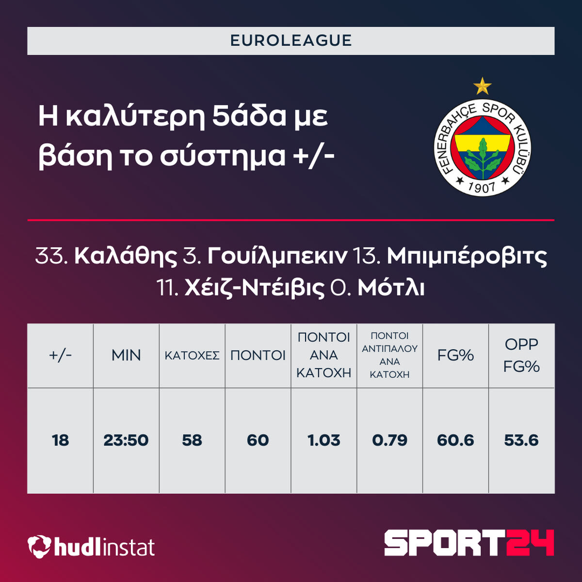 Η άλλη είναι η πεντάδα με το καλύτερο +/- (μίνιμουμ 10 λεπτά συνύπαρξης):