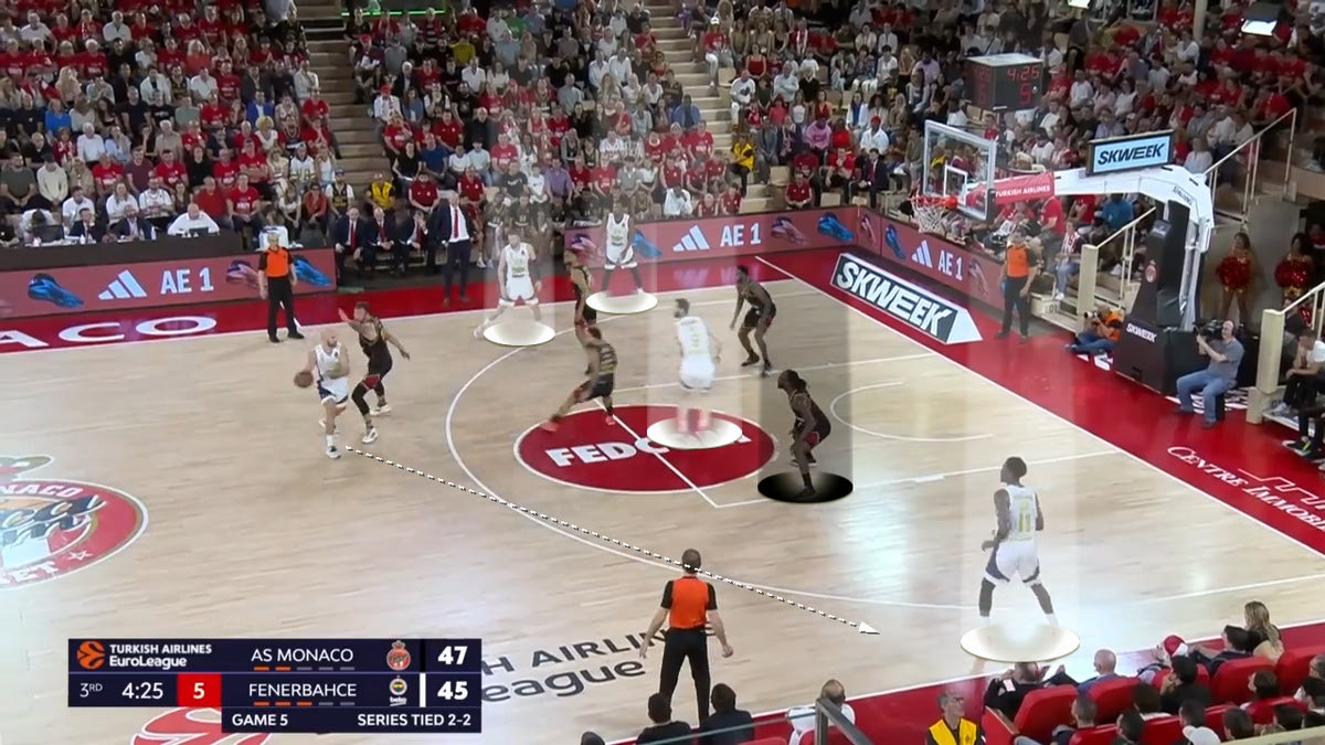 Συνήθως οι ομάδες έχουν μία-δύο βασικές αρχές που βάζουν στην άμυνα στο Pick and Roll. Η Φενέρ όμως προσαρμόζει κάθε άμυνά της στα πρόσωπα που εμπλέκονται αμυντικά και επιθετικά. Αν για παράδειγμα ο ψηλός που αμύνεται στο Pick and Roll είναι ο Μότλι, μπορεί να παίξει από Flat (ο ψηλός δίνει το σουτ, μένοντας πισω), μέχρι Hedge Out (δυναμική άμυνα ψηλού στον χειριστή) και αλλαγές. Αν εμπλέκεται ο Σανλί, συνήθως παίζει Drop (ο ψηλός μένει πίσω). Αν εμπλέκεται ο Παπαγιάννης, τότε παιζει level (ο ψηλός είναι στο ύψος του αντίπαλου σκρινέρ) ή Flat (μένει πίσω για να δώσει το σουτ). Αν εμπλέκεται ο Χέιζ-Ντέιβις (που έπαιξε στο 5 κόντρα στην Μονακό) θα κάνει αλλαγές.