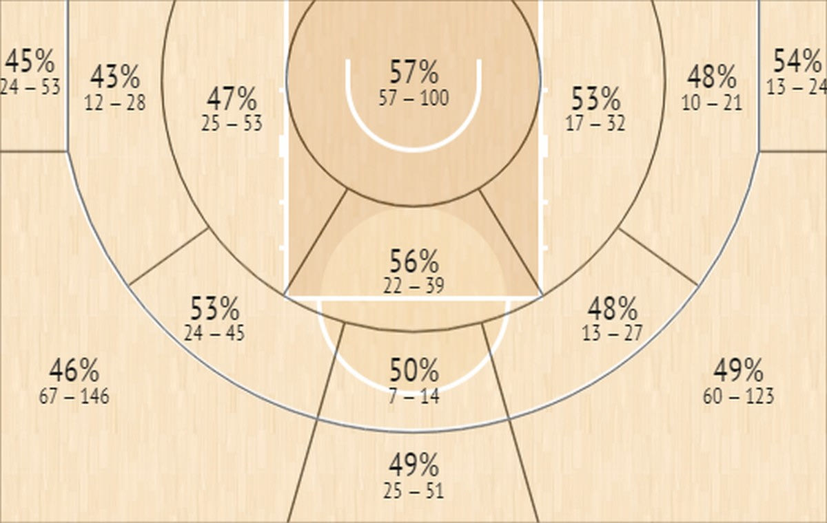 Το δε Shot Chart του από την διετία 2017-2019 είναι αδιανόητο, αφού σούταρε με απίστευτα ποσοστά από κάθε σημείο του παρκέ: