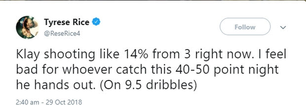 Το προφητικό tweet του Ταϊρίς Ράις για την 50άρα του Κλέι Τόμπσον!