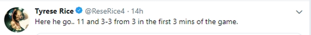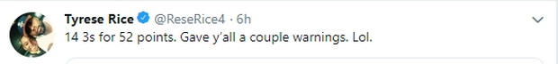 Αρκετές ώρες αργότερα, ο Ράις έγραψε σχετικά: ” 14 τρίποντα για 52 πόντους. Σας είχα προειδοποιήσει”.
