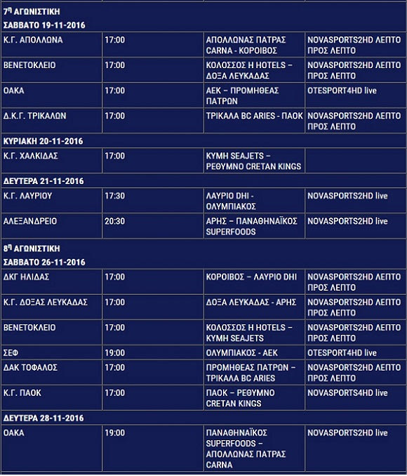 Το πρόγραμμα των επόμενων αγωνιστικών