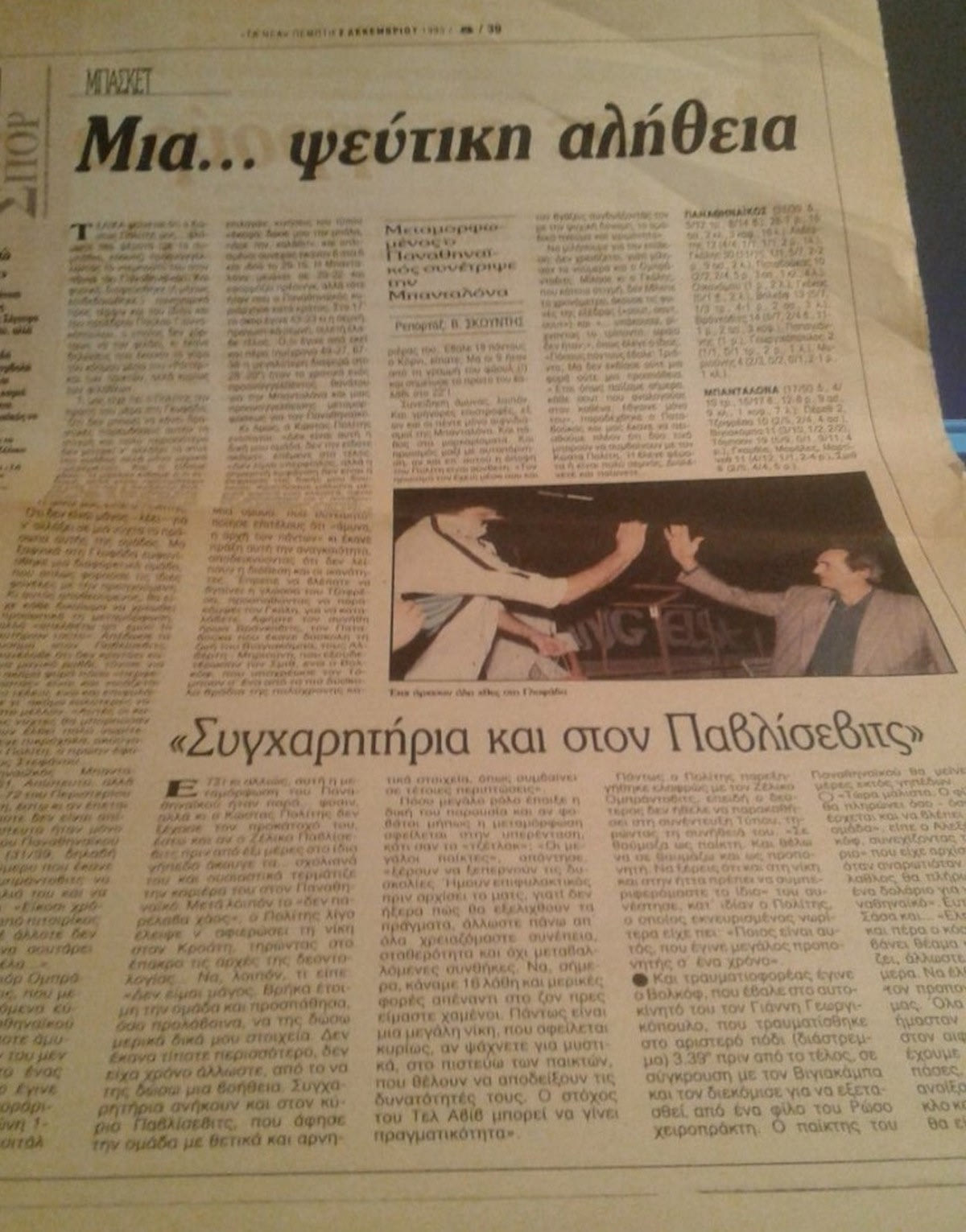 Την πρώτη ημέρα του Δεκεμβρίου του 1993 ο Παναθηναϊκός στο ντεμπούτο του συχωρεμένου του Κώστα Πολίτη (ο οποίος διαδέχθηκε τον Ζέλικο Παβλίσεβιτς) διέλυσε τη μετέπειτα πρωταθλήτρια Ευρώπης Τζουβεντούτ Μπανταλόνα με 85-61!