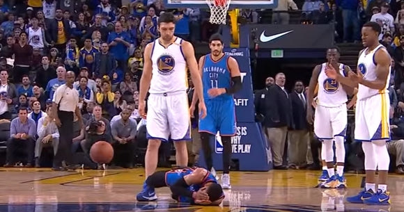 Ήταν λίγο πριν το τέλος του πρώτου ημιχρόνου, με το σκορ στο 56-52, ο Westbrook προσπάθησε να πάρει ένα σκριν, με τον σέντερ των Warriors να έρχεται με φόρα πάνω του και να τον πετάει στο παρκέ, ενώ λίγο αργότερα στάθηκε από πάνω του και τον κοίταξε υποτιμητικά. Όπως είναι λογικό, ο Γεωργιανός σέντερ χρεώθηκε με flagrant foul 1 και η… ζωή συνεχίστηκε. Δείτε το σχετικό βίντεο.