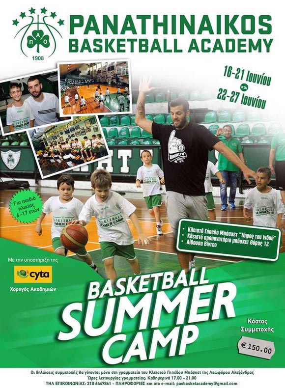 Για δεύτερη διαδοχική χρονιά, ο Παναθηναϊκός διοργανώνει Summer Camp υψηλών προδιαγραφών στο κλειστό της Λεωφόρου Αλεξάνδρας. Οι “πράσινοι” δίνουν τη δυνατότητα σε παιδιά που είναι γεννημένα από το 1998 έως το 2009 να μάθουν τα βασικά του αθλήματος και να γνωρίσουν από κοντά τα είδωλά τους (βλ. παίκτες της ανδρικής ομάδας).