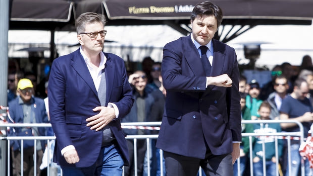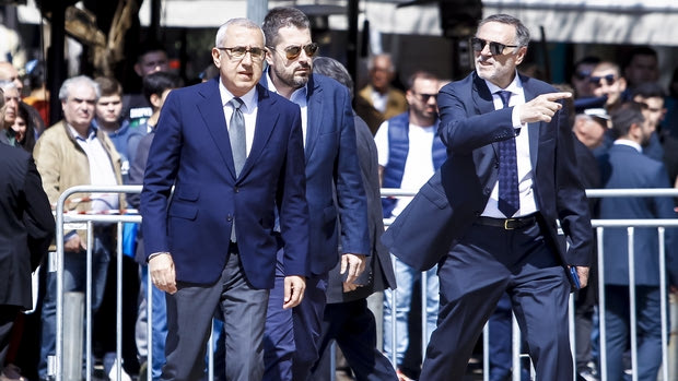 Στην πάνω φωτογραφία ο αντιπρόεδρος της ΠΑΕ, Ολυμπιακός, Σάββας Θεοδωρίδης και από κάτω ο γενικός διευθυντής της ΚΑΕ Ολυμπιακός, Χρήστος Σταυρόπουλος και ο υπεύθυνος επικοινωνίας των “ερυθρόλευκων”, Χρήστος Μπαφές.