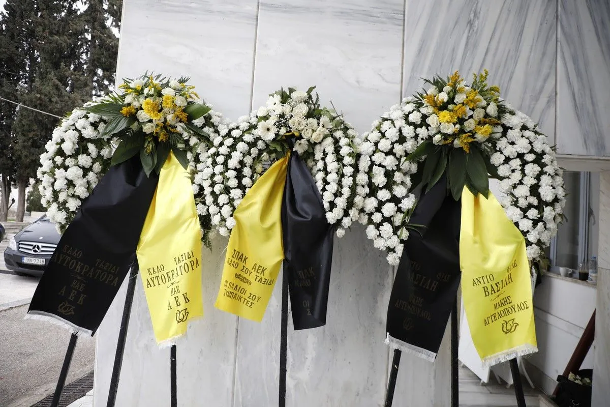 Πλήθος κόσμου έδωσε το παρών στο τελευταίο αντίο, μεταξύ των οποίων ο Βασίλης Κικίλιας και ο Γιώργος Μαυρωτάς.