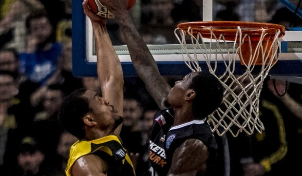 Ο Άλεξ Ντέιβις της Νίμπουρκ έκοψε στα ίσα τον Βινς Χάντερ της ΑΕΚ και ακολούθως κάρφωσε, κερδίζοντας με το σπαθί του μία θέση στο Top-5 της 2ης ημέρας της φάσης των 16 του Basketball Champions League.